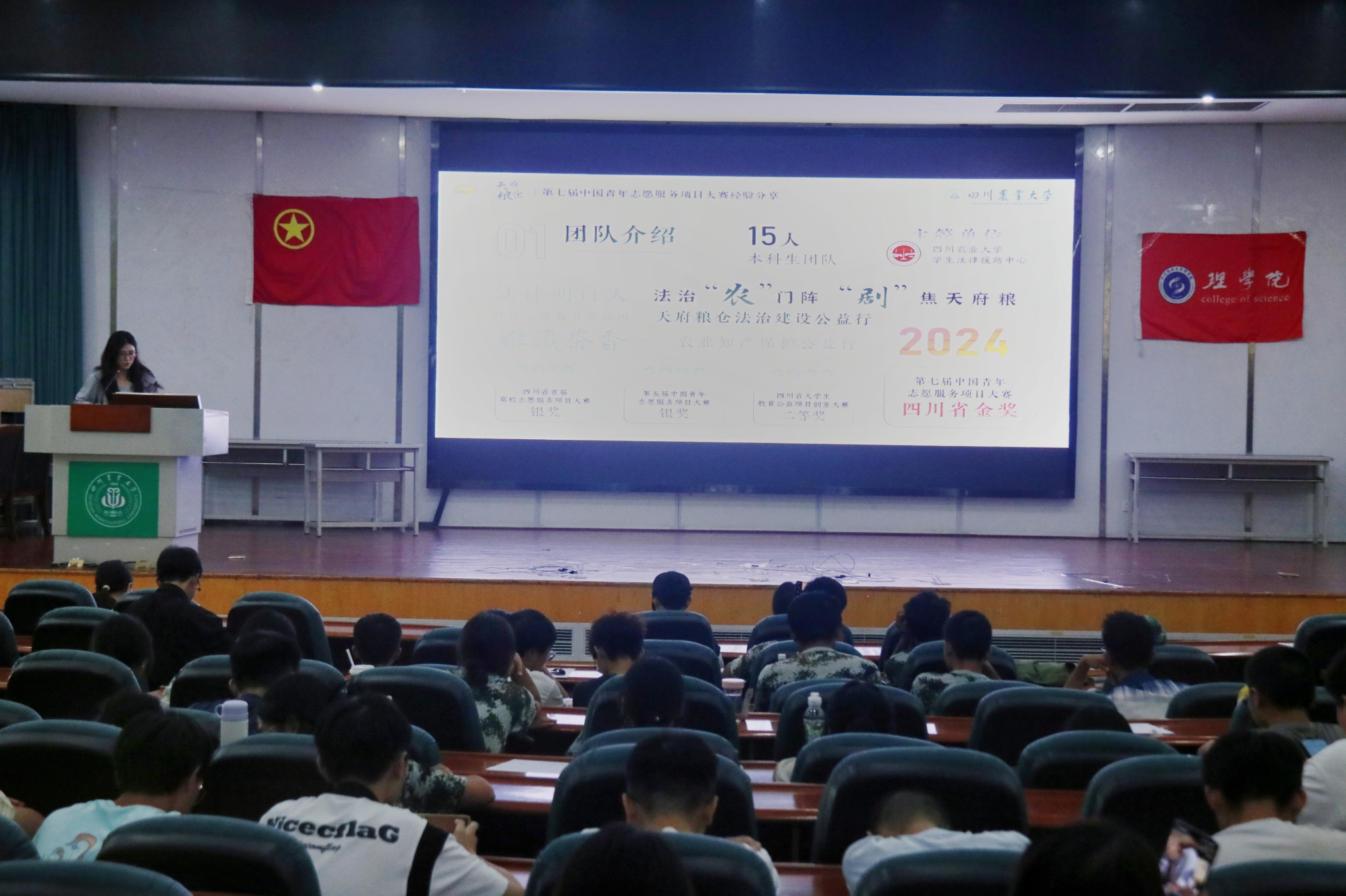 实践出真知,为了彰显实践活动的伟大意义,活动邀请了校级重点实践团队“红理鱼”团队、青志赛省级金奖团队法治“农”门阵团队进行经验分享。红“理”鱼团队负责人周郁劼详细介绍了“红‘理’鱼”项目的背景、实施过程以及取得的成果。她分享道:“我们团队的成员来自不同的专业,但在共同的目标下,我们用青春力量架起了红色文化传播的桥梁。从单一形式到多元开展,从不甚了解到侃侃而谈,每一步都充满挑战,但当红色足迹遍布各地之时,所有的付出都变得值得。”此外,法治“农”门阵志愿服务项目负责任邓鸿洁也向我们分享了他们在第七届中国青年志愿服务项目大赛中的经验,从校级到省级、从银奖到金奖,每一步都是青春奋斗的结果。此次分享,让同学们深刻感受到了实践的力量与魅力,激发了他们将理论知识转化为实践行动的决心与勇气。