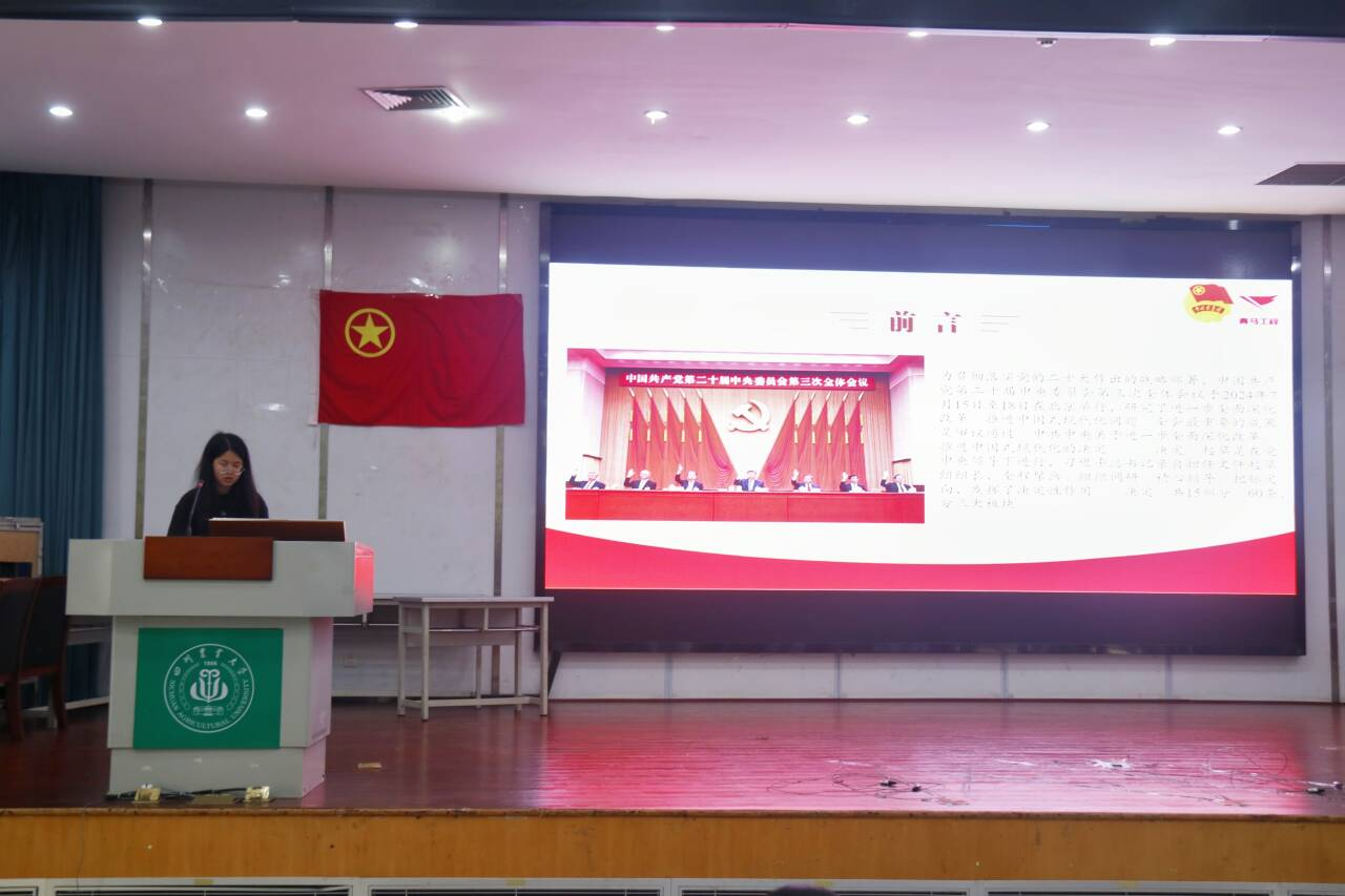 本次活动邀请了校青马班学员曾明菀同学领学党的二十届三中全会精神,她用生动的语言,深入浅出地解读了全会精神的实质与深远影响,鼓励青年学子将个人梦想融入国家发展大局,以实际行动践行青年的使命,为实现中国式现代化贡献川农大力量。