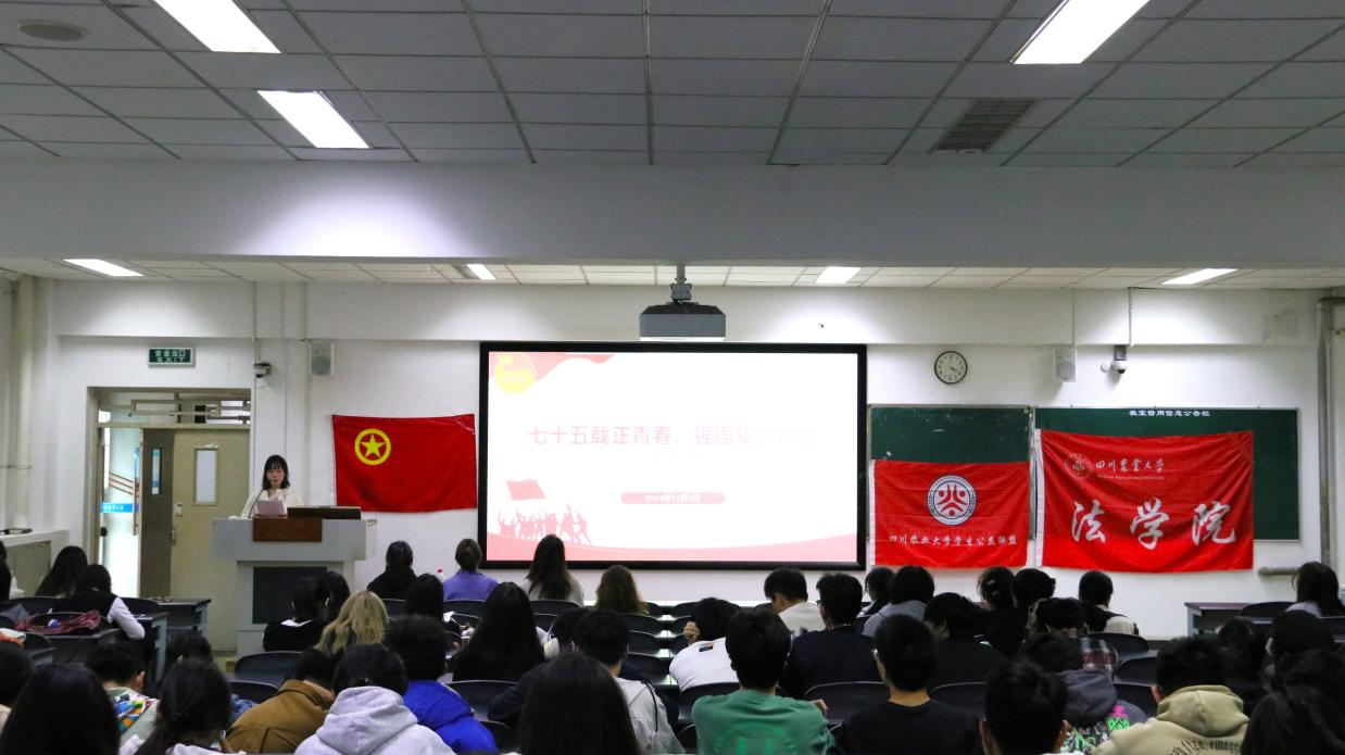 2024年11月5日,由法学202206团支部,法学202204团支部,法学202205团支部,信科202204团支部,法学202306团支部,学生公益联盟团支部共同举办的十月班团活动在10教A403展开。本次班团活动围绕“七十五载正青春,强国复兴有我”的主题,各支部同学积极参与,还特别邀请了校青马班学员陈洁、樊馨参与本次活动。