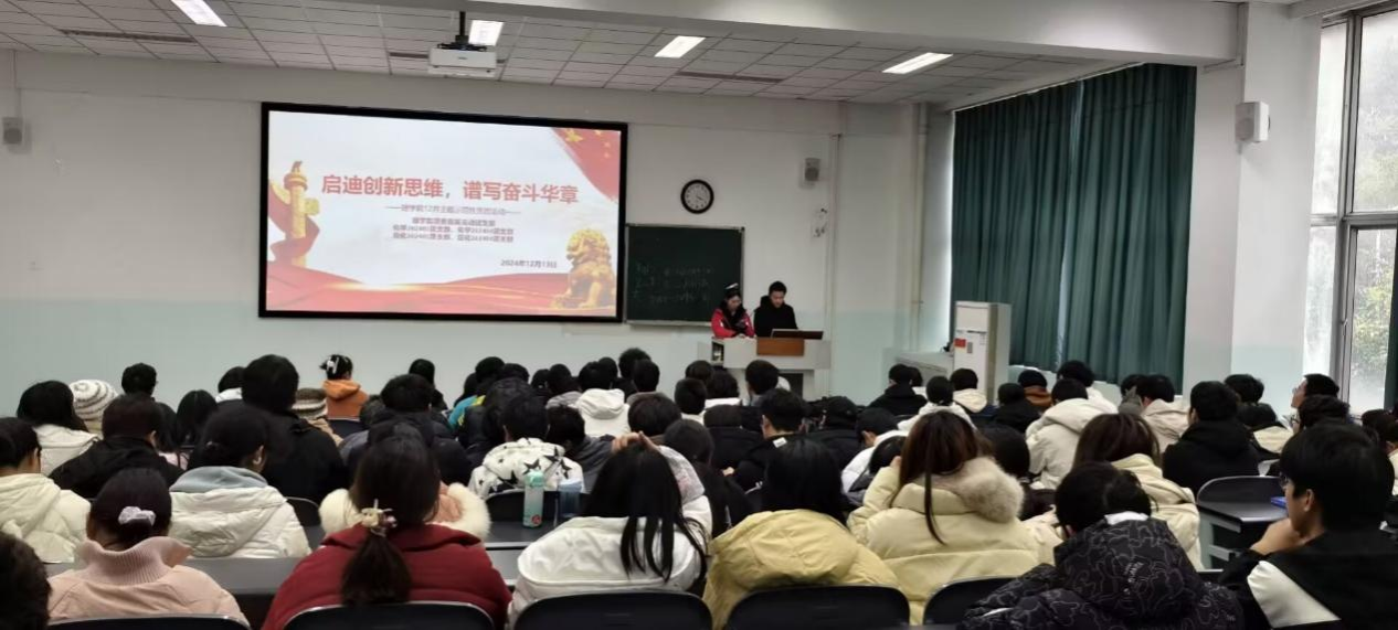 12月13日,理学院团委直属流动团支部携手化学202401、化学202404、应化202401、应化202404四个团支部,在十教B401教室共同举办了一场主题为“启迪创新思维,谱写奋斗华章”的示范性班团活动。此次活动旨在培养青年学生的创新意识和爱国情感,激励他们在新的时代背景下勇往直前,勇担时代重任。