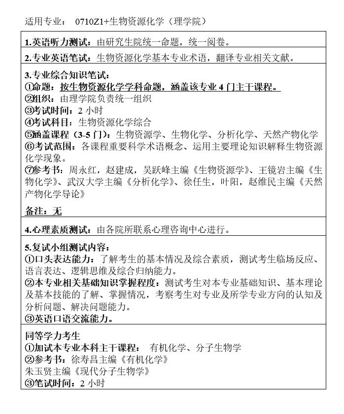 理学院2016年研究生招生生物资源化学复试方案