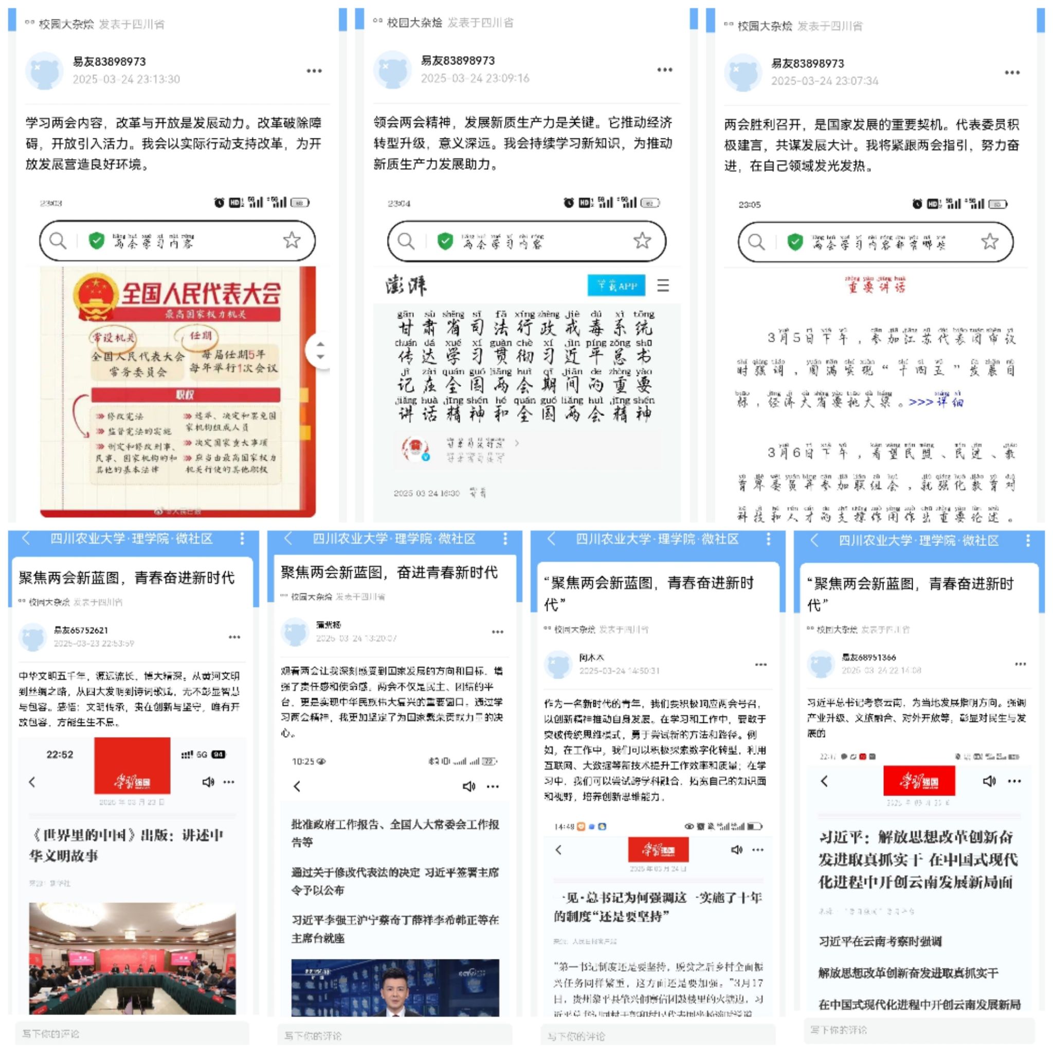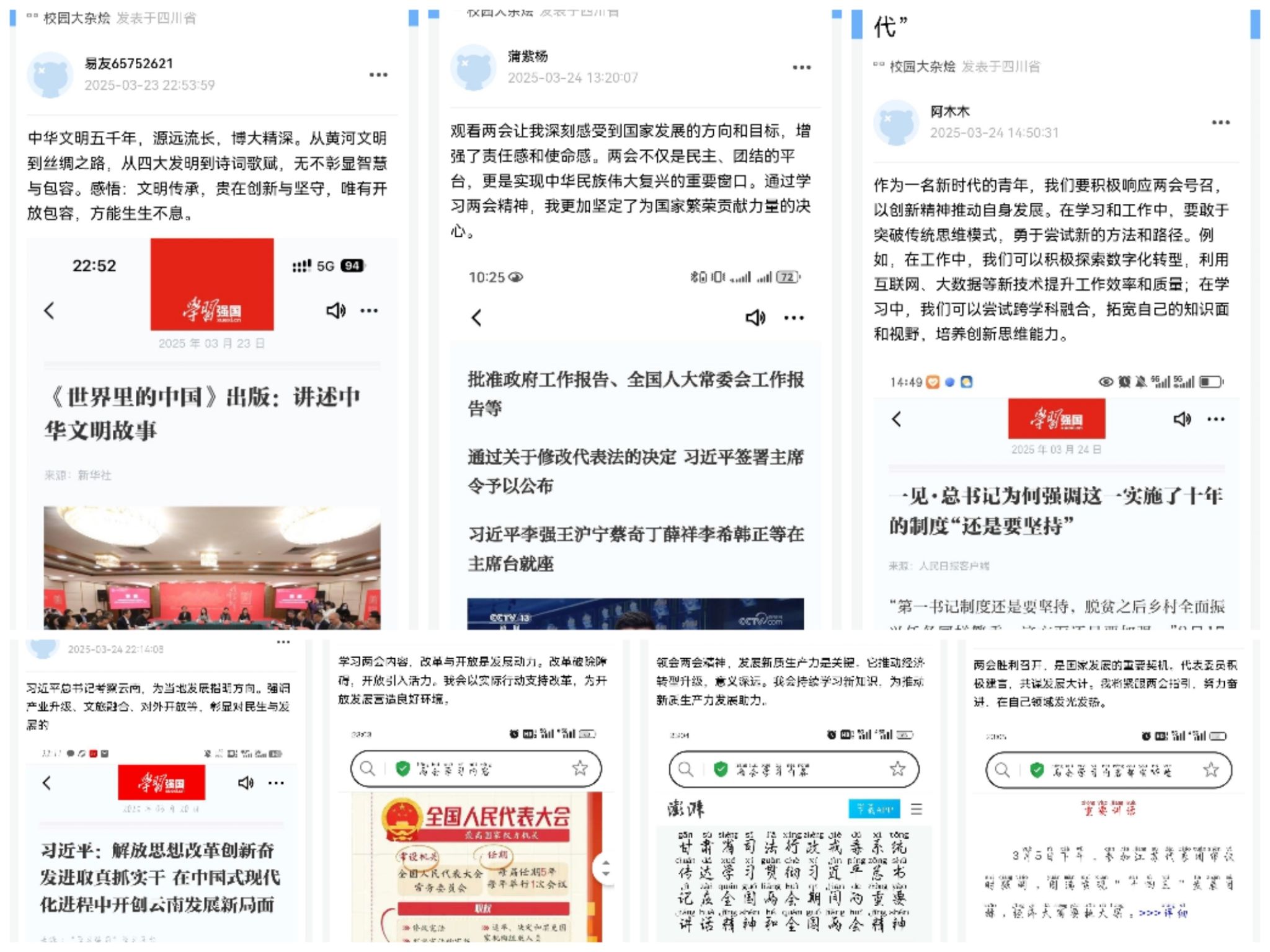 不负春光美,学习正当时。为深学笃行2025年全国两会精神,推动新时代爱国主义教育走深走实,我院学生党建工作办公室组织宣传部于3月12日至24日开展聚焦两会新蓝图·青春奋进新时代主题学习活动。