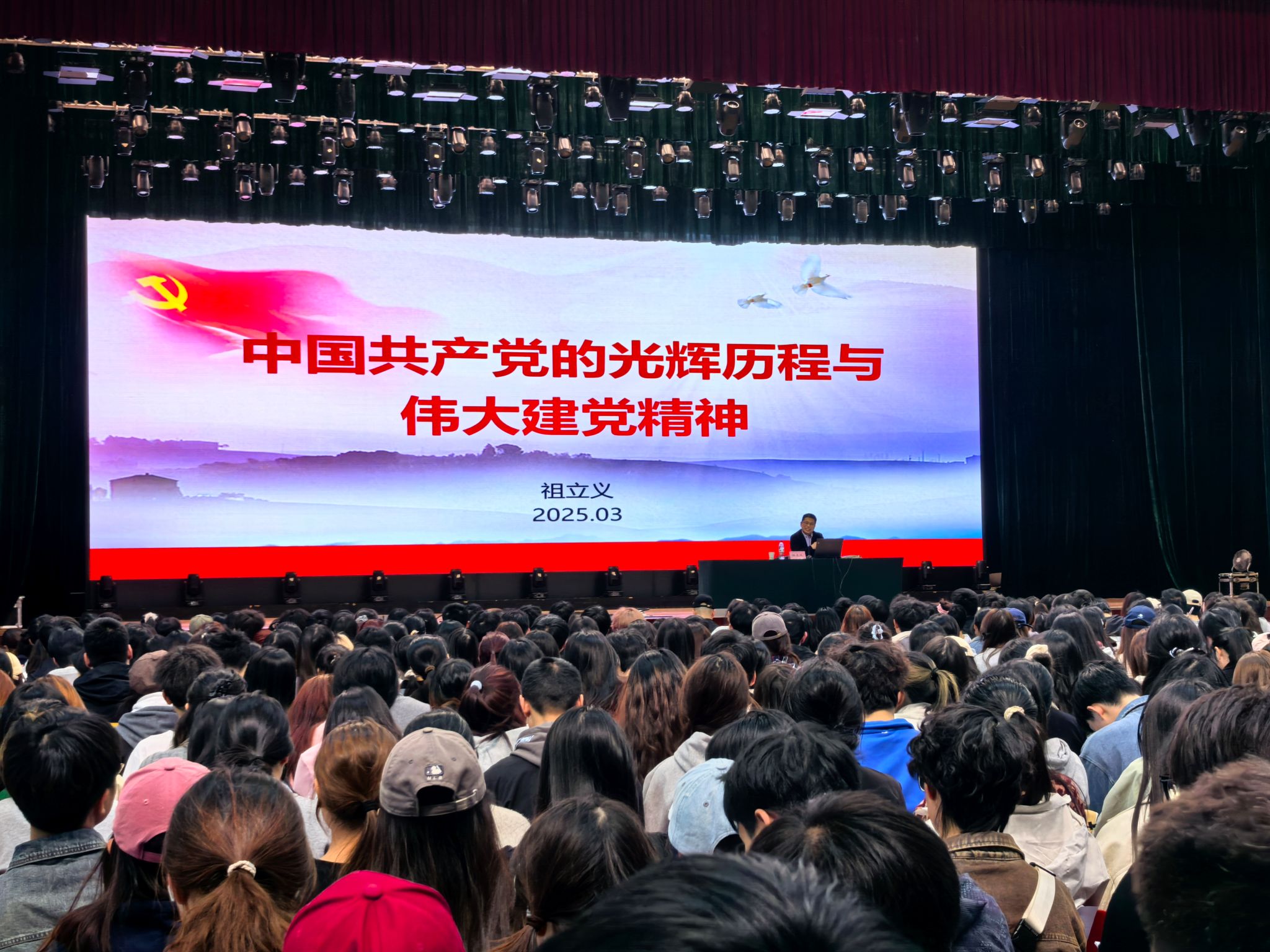 3月25日下午,由学校党校主办、理学院分党校承办的2025年春季学期入党积极分子培训班(雅安校区)于体育馆开班。公共管理学院党委副书记、纪委书记祖立义受邀为871名学员作“党的光辉历程和伟大建党精神”专题辅导报告。理学院党委办公室主任、团委书记刘艳红主持报告会。