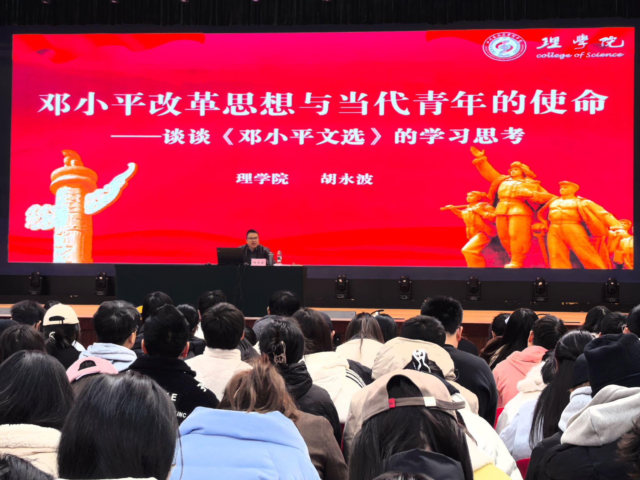 3月30日上午,学院党委书记胡永波在体育馆为雅安校区871名入党积极分子作题为“邓小平改革思想与当代青年的使命担当——谈谈《邓小平文选》的学习思考”的专题辅导报告。学院党委办公室主任刘艳红主持报告会。