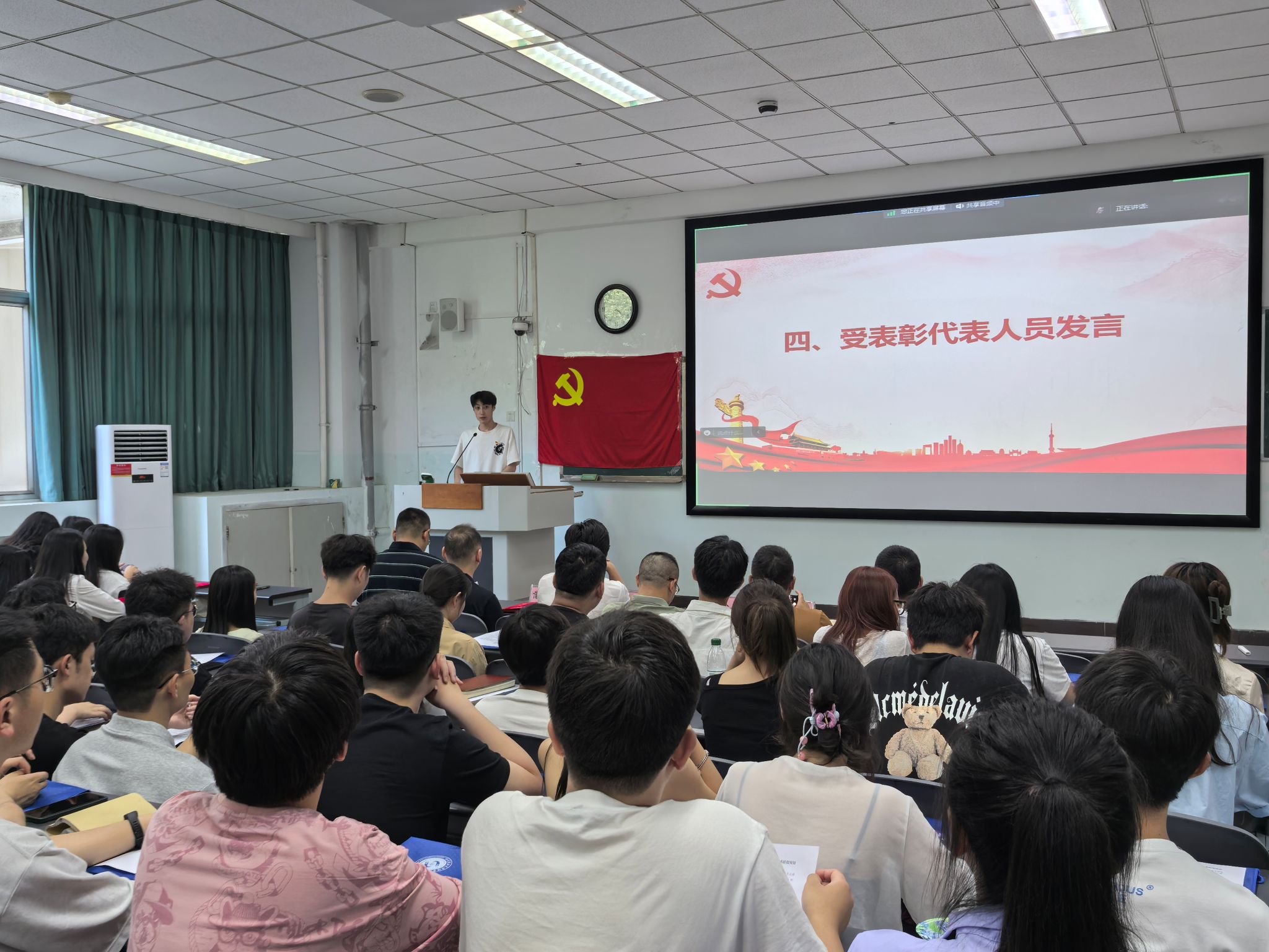 随后开展的“党员宿舍”授牌仪式中,胡永波同志为5个党员宿舍代表授牌,明确要求“党员宿舍”成为文明标杆与学习榜样,推动党员示范作用从课堂延伸至生活阵地,让红色基因在寝室微单元中生根发芽。