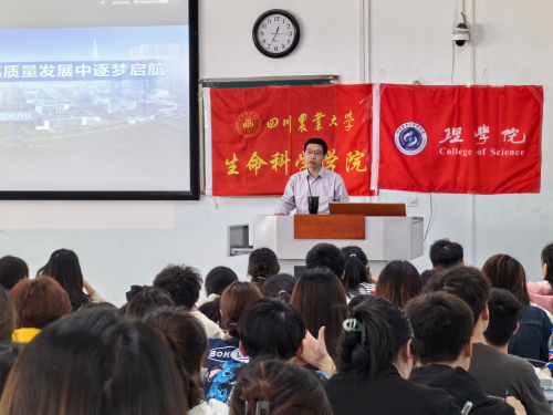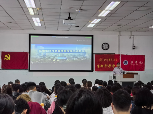何建飞围绕三个“新”展开了《在新时代高质量发展的浪潮中逐梦启航》课程讲授。第一个“新”即建设产业之翼未来新城,为川农学子胸怀家国、追逐青春梦想提供了新机遇。何建飞对大数据产业园、省级化工园区、AI研发中心等方面进行了详细介绍,并表示雅安经开区是具有发展空间的新兴开发区,也是有志青年放飞青春梦想的机遇,青春与时代交织,这个伟大的时代需要青年去奋斗去拼搏。第二个“新”是建设产业之翼未来新城,为川农学子背行囊踏向往、绽放出彩人生提供了新天地。雅安经开区为国家新型工业化产业示范基地,四川省优秀开发区,四川省“5+1”特色重点产业园区,为川农学子主动扎根在雅安,在推进高质量发展中成就自我、成就未来、成就人生提供良好平台。第三个“新”为建设产业之翼未来新城,为川农学子造福社会、实现美好理想提供了新舞台。雅安经开区正在加速构建现代化产业体系、特色数字经济产业,扩大先进材料产业,积极推动电子信息材料、功能性新材料相关产业的加速发展,其中人才是宝贵的资源、是最根本的优势。当代青年生逢盛世当不负盛世,生逢其时当奉献其时,应在中国式现代化进程中积极践行“请党放心、强国有我”的青春誓言。