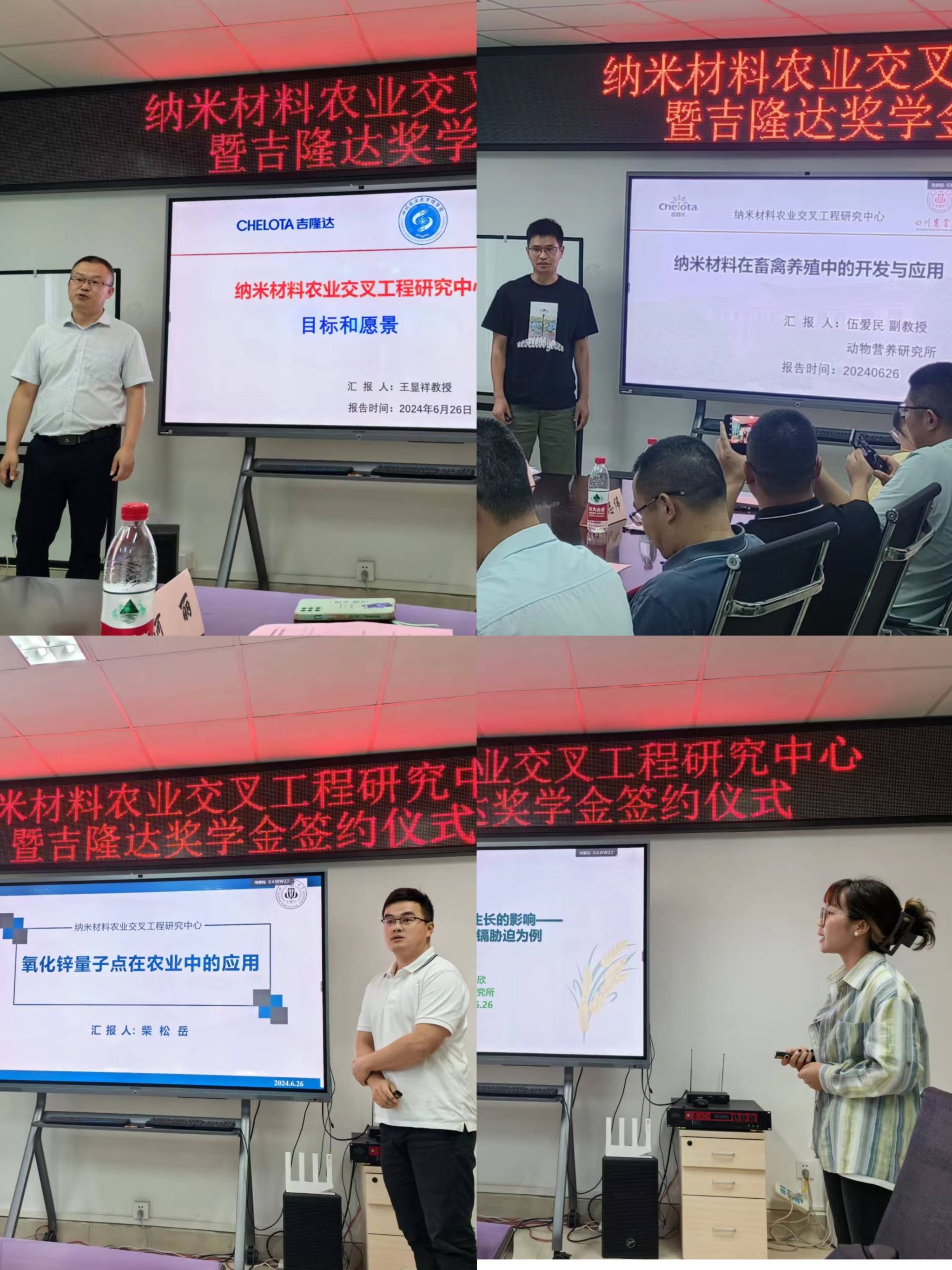 随后,王显祥教授与农学院雍太文教授、动物营养研究所伍爱民副教授、小麦研究所柴松岳博士以及水稻研究所万嘉欣同学先后作了纳米材料农业交叉应用交流。