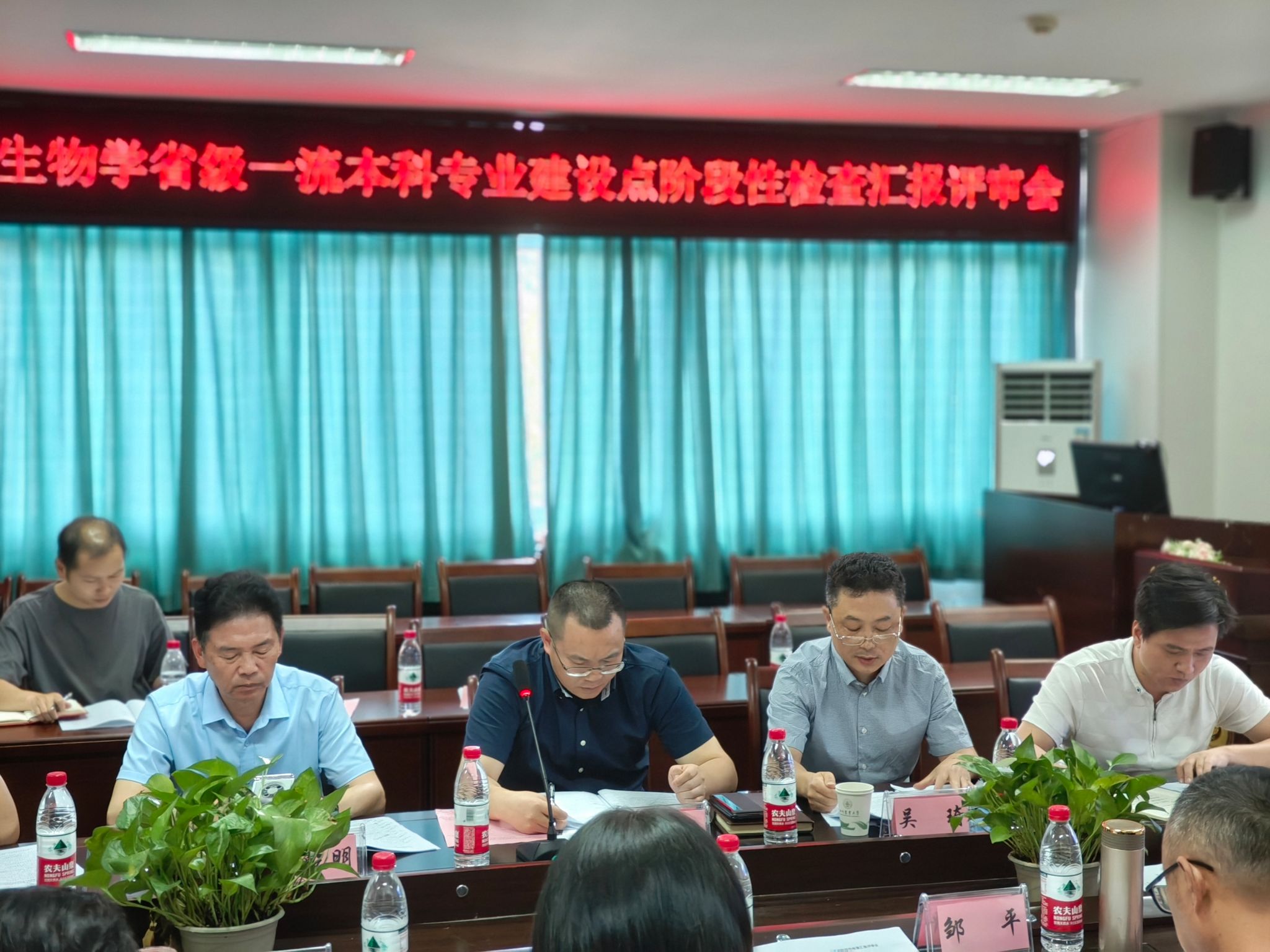 会上,学院副院长吴贺君简要介绍了省教育厅和学校等上级部门对此次阶段性检查工作的相关要求和安排,以及学院前期相关专业开展自查自评情况。化学生物学专业负责人李云春副教授进行了PPT汇报,主要围绕专业建设目标和建设任务,系统梳理获批以来专业建设进展、举措和成效,同时分析了专业建设过程中存在的问题、原因及下一步工作思路。各位评审专家针对检查报告及汇报情况进行了专业的提问和点评,指出现有各方面工作的亮点和存在不足,并给出具体的改进建议。专家组认为理学院化学生物学专业自2020年获批省级一流本科专业建设点以来,在课程与教材建设、教学教改研究、师资队伍建设和学生培养质量等方面取得了积极进展和成效,专业建设总体的目标任务完成情况良好,整体建设水平有较大提高。但也存在专业定位和特色还需进一步凝练、省部级及以上标志性成果的产出还需加快推进、一流教学团队建设及产教融合协同育人还需持续完善等问题,需要再完善下一步建设规划,彰显专业优势特色。