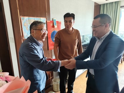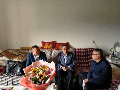 秋风送爽、丹桂飘香,值此重阳佳节来临之际,学院院长饶含兵、党委书记胡永波、应化系主任蒲祥、行政办公室主任白源媛以及工会委员马学平一行前往退休教师胡惠民的家中,为这位满整90岁高龄的退休教师送上了节日的祝福与深切的关怀。