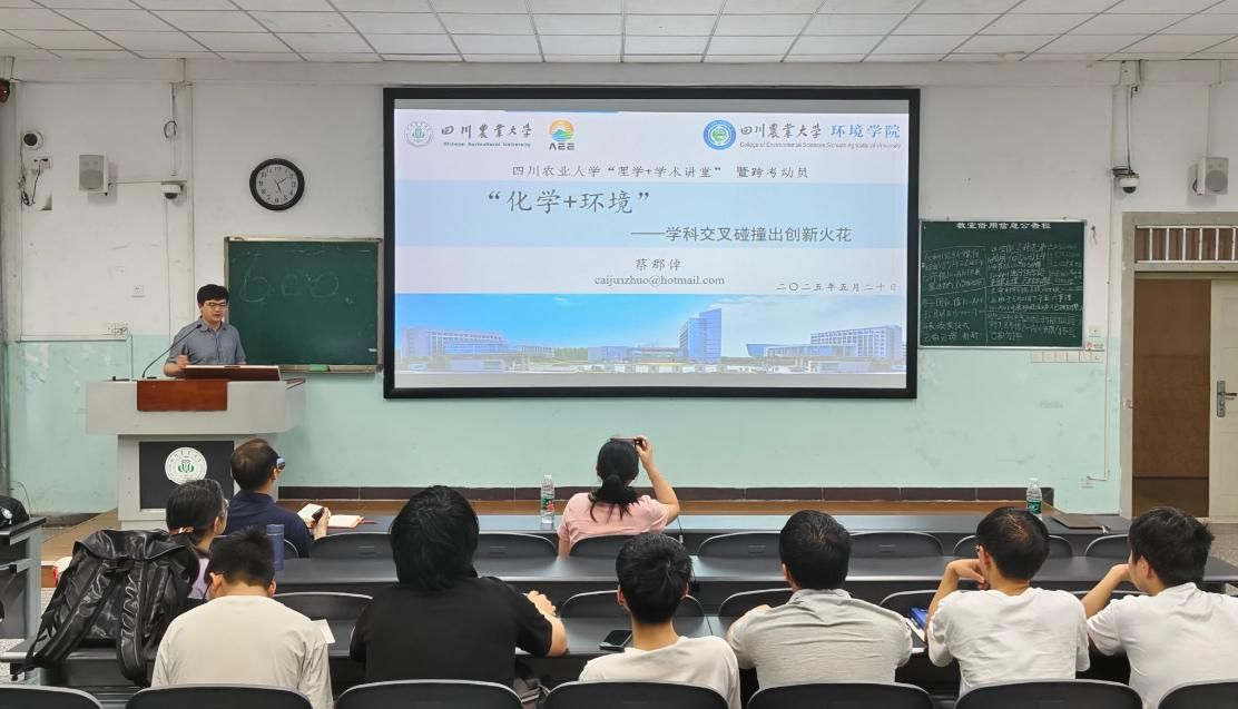 蔡博士以“化学+环境”—学科交叉碰撞出创新火花为题,首先结合自身求学经历,为同学们分享了怎么读研究生。随后从问题复杂、技术发展、社会需求的角度剖析了为什么要做学科交叉,并表示学科交叉融合更有利于突破传统边界,创造新价值。最后,为同学们分享了实验室在构建环境功能材料、开发电化学+生物环境技术、化学方法揭示环境机制三个方向取得的最新研究进展,并鼓励应化专业同学报考课题组研究生。