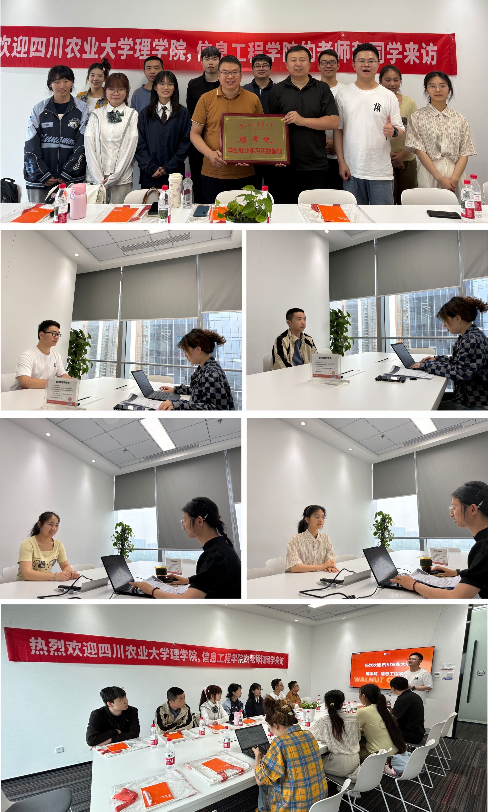 会议伊始,作为少儿编程领域的引领者,核桃编程的董大伟和吴迪两位老师系统介绍了企业概况、文化理念、人才培养模式及核心业务板块,并重点剖析了晋升体系与人才培养模式,帮助师生们对其业务范畴与人才需求有了清晰认知。核桃编程是一家专注于提升青少年编程素质的科技创新公司,在少儿编程领域处于行业引领地位。在提问交流环节,双方就实习就业、课程合作、公益活动等内容展开深入探讨,为合作奠定良好基础。胡永波指出,在教育行业就业联盟的框架下,期待与核桃编程等优质企业开展更深层次、更富成效的合作。同时,胡永波也诚挚邀请企业专家深入学院“第二课堂”,参与学生培养全过程,共同助力应用型人才的成长。最后,胡永波与核桃编程签订就业实习实践基地协议并授牌,双方合影留念。师生们参观了核桃编程的办公区域与工作环境之后,企业Hr对两学院8名2025届毕业生分别进行了现场面试。