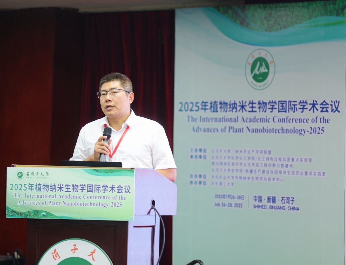 7月26日至28日,2025植物纳米生物学国际前沿论坛在新疆石河子市召开。会议由石河子大学和纳米农业产学研联盟主办,石河子大学化学化工学院和农学院承办,华中农业大学作物纳米生物学与技术中心合办。我校“功能纳米农业应用创新”团队、理学院化学生物学系鲁志伟副教授应邀出席,并作题为《铁基纳米微肥调控小麦抗逆增产的机制及应用研究》的特邀报告。