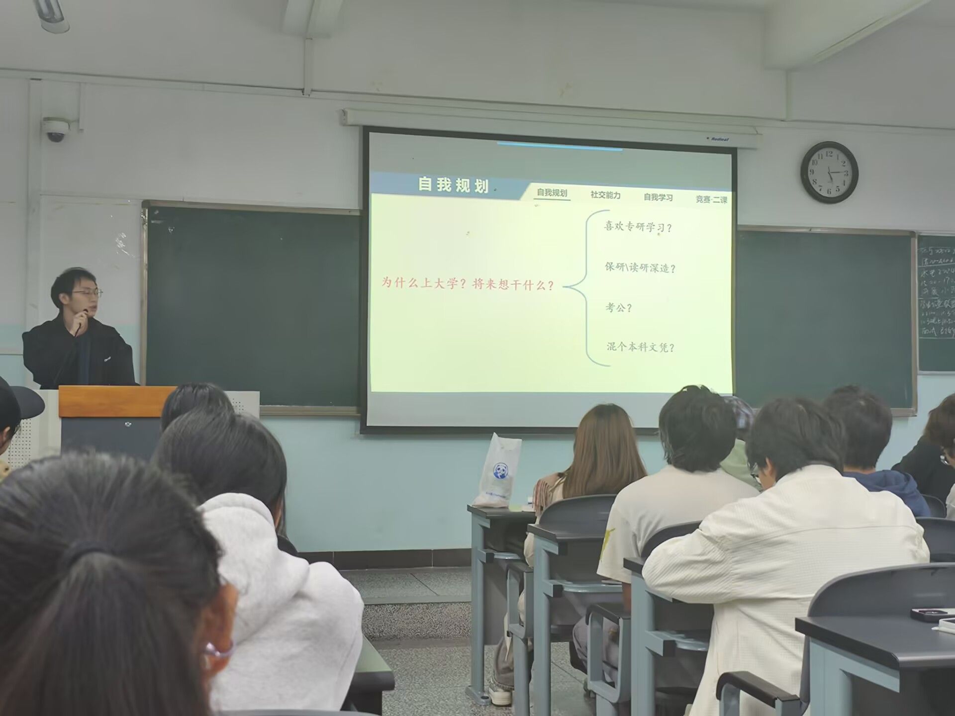 活动启动后,保研学长学姐们主动走进新生群体,借助小班班会、班团活动等多种场景开展深入分享。分享内容兼具针对性与实用性,全面覆盖学习方法总结、时间管理技巧、职业规划指引等新生最为关注的核心领域,旨在从多个维度为新生赋能,帮助他们快速适应大学学习节奏,树立清晰明确的学习目标,顺利完成从高中到大学的角色转变。