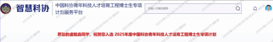近日,中国科学技术协会公布了2025年度青年科技人才培育工程博士生专项计划入选名单,学院2024级博士研究研究生虞皓淼成功入选。此次入选既是对其个人学术能力与科研潜力的充分肯定,这也是我院研究生首次入选该国家级专项计划。