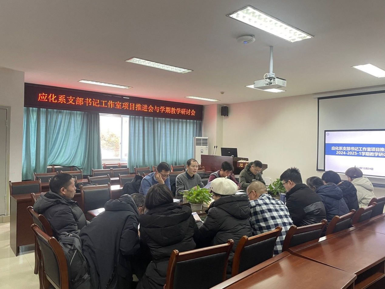 12月28日,应用化学系在理学楼305会议室召开了支部书记工作室项目推进会与学期教学研讨会,会议由应用化学系主任蒲祥主持,学院副院长吴贺君、应化系全体教师参与了本次会议。