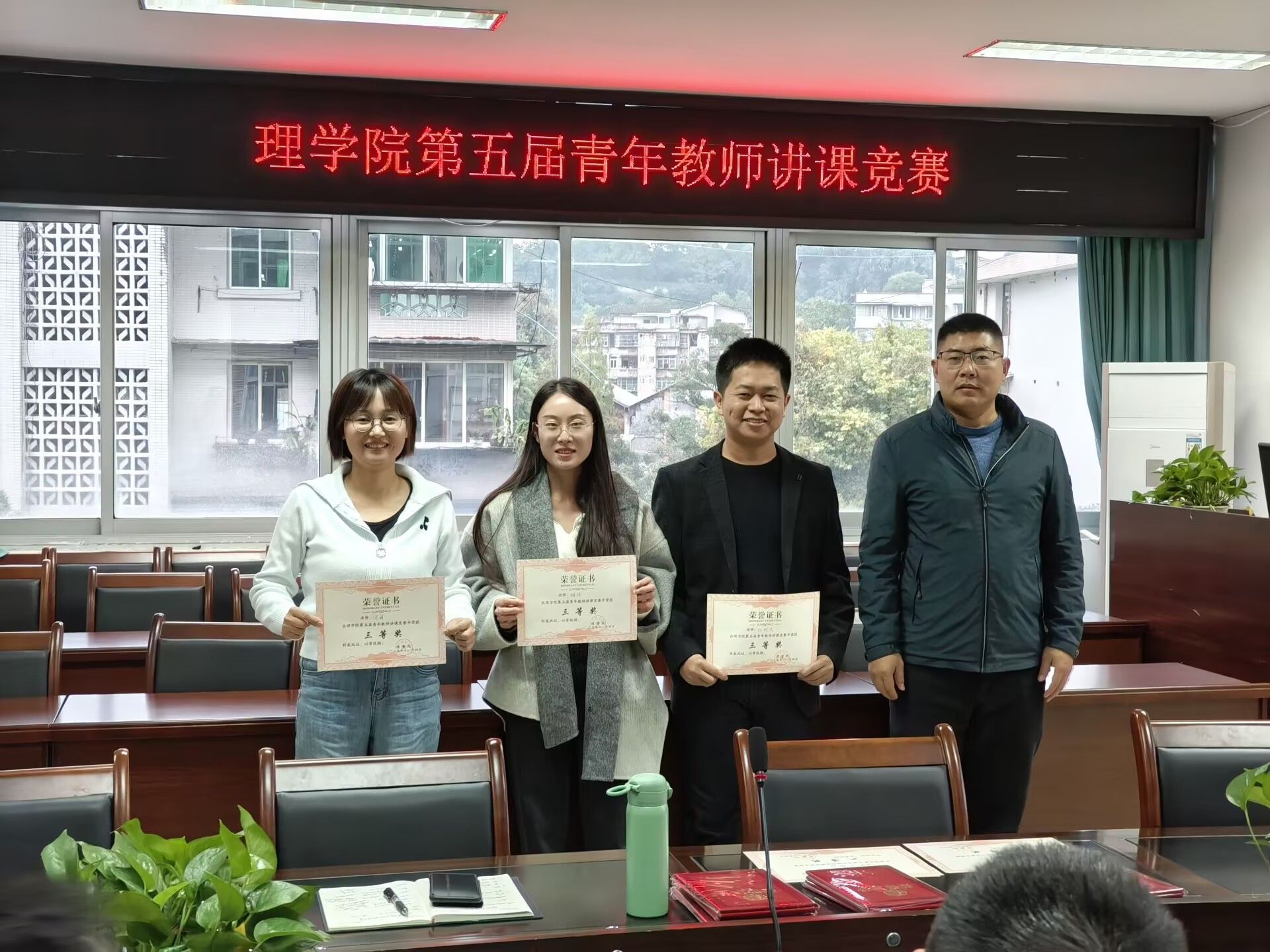 最后,胡永波作总结讲话。他强调,持续开展青年教师讲课竞赛是学院加强师资队伍培养、保障教学质量稳步提升的重要举措,对推动学院教育教学高质量发展具有关键意义。结合本次竞赛,他分享三点体会:一是数理化基础学科教学内容难度较高,各位专业教师不仅能站稳讲台、胜任基础课教学,还涌现出一批优秀代表,充分体现了理学院教师的专业素养与责任担当;二是教学竞赛的核心在于“讲出设计感、讲出激情、讲出科技、讲出创新”,唯有让课堂生动有趣、富有吸引力,才能真正提升教学效果;三是面对教育领域的新挑战与新要求,全体教师需提前做好准备——既要主动适应人工智能对教学模式的冲击,积极落实课程思政育人要求,也要坚持教学与科研“齐头并进”,不断提升自身综合实力,以“科教融汇”为基础,逐步实现“产教融合”的育人目标,为培养高素质人才贡献更多力量。