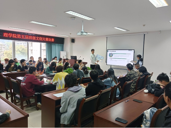 10月29日中午12:30,理学院第五届班级文创设计大赛复赛于11-305举行。学院党委办公室主任、团委书记刘艳红,党委办公室副主任、团委副书记杨岚楠,党委办公室老师李阳,辅导员助理以及大众评委团出席本次复赛并担任评委。比赛现场,各班答辩同学详细阐述了本班文创作品的设计思路、设计元素以及作品寓意,展现出积极向上、活泼奋进的班级风貌。参会老师针对作品特色进行提问,并针对不足之处提出修改建议,让在座的同学受益良多。最终,应用化学202405获得一等奖,化学202401、化学202405获得二等奖,应用化学202403、信科202405、应用化学202401获得三等奖。