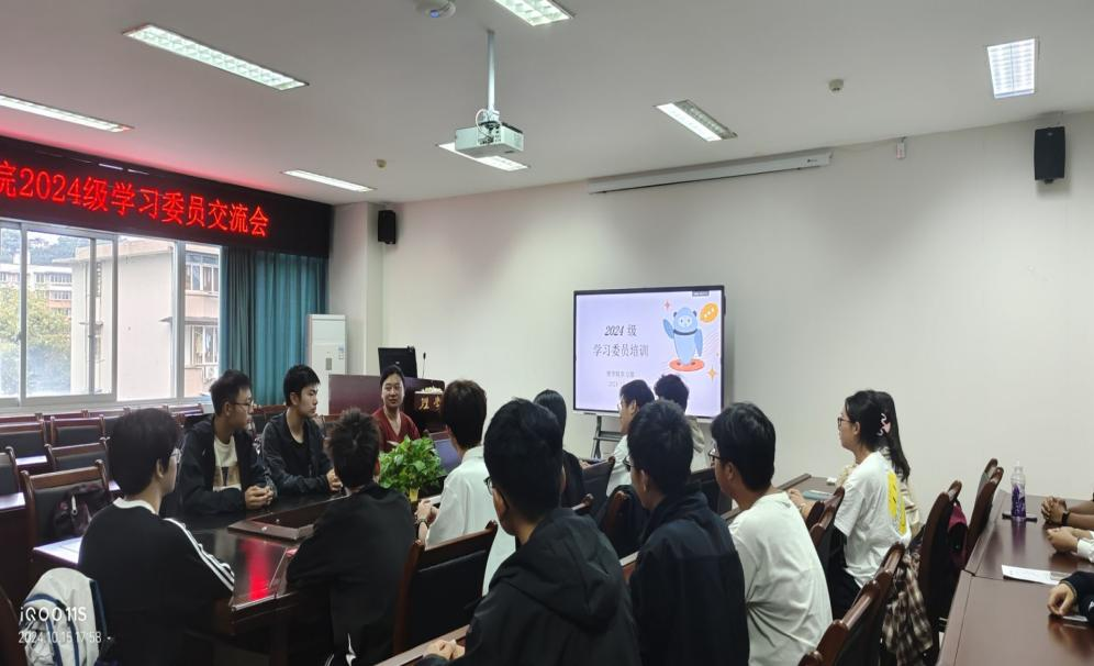 为引导2024级新生班学习委员深刻理解其岗位职责,全面熟悉学院的教学管理制度,更加高效的开展工作,推进新生班级学风建设,学院学习部于10月15日下午在11-305会议室组织举办了专题培训交流会。学院党委办公室副主任、团委副书记杨岚楠,辅导员助理瞿璐瑶,2024级学习委员及学院学习部全体成员参加了此次会议。