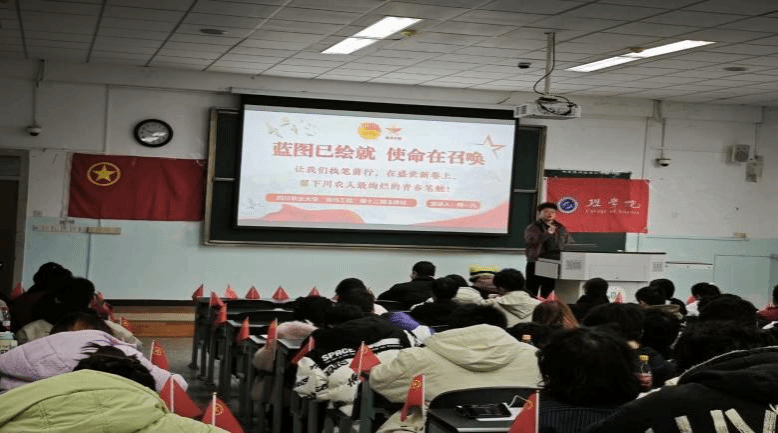 活动在激昂的团歌声中启幕。青马班优秀学员傅一凡领学中国共产党第二十届中央委员会第四次全体会议精神,与在场同学一同解码十五五规划的宏伟蓝图,共同探讨我辈川农青年如何在强国建设、民族复兴的壮阔征程中,以实干之力担时代之责!在互动环节,同学们积极提问、畅谈体会,在交流中进一步加深了对规划内容的理解。