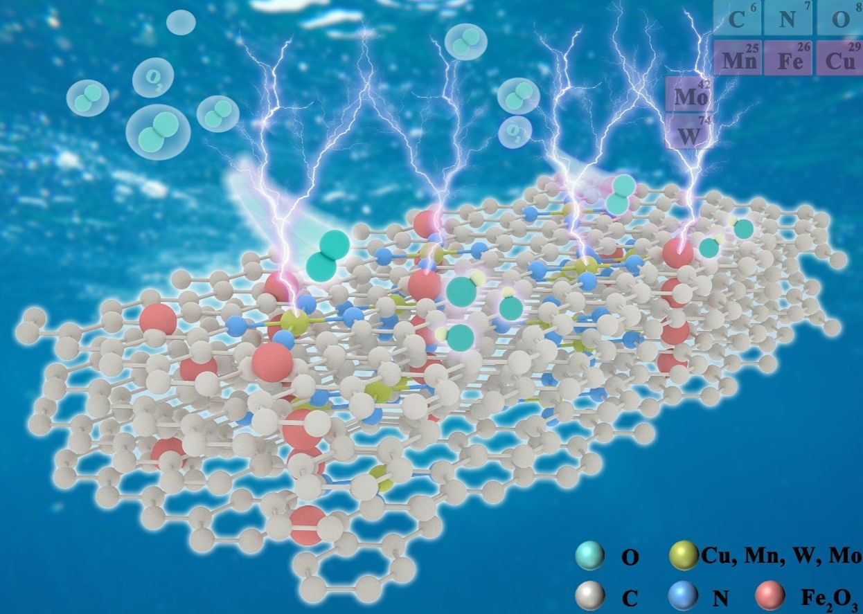 氧还原反应(ORR)是燃料电池和金属空气电池等新型能量存储和转换系统中必不可少的两个半反应之一。然而,ORR的电子传递受限于多步反应,传质效率低,导致其动力学速度慢,极大地阻碍了其在实际器件中的应用。因此,有必要开发能够同时实现快速电荷转移和传质的高效ORR催化剂。研究团队创新采用通用且经济的KCl熔盐辅助策略,将具有丰富氧空位的高分散Fe2O3纳米粒子(NPs)均匀地锚定在木质素衍生的金属-氮-碳(M-N-C)分级多孔纳米片上,制备了一系列不同贵金属的M-N-C催化剂(Fe2O3/M-N-C, M=Cu, Mn, W, Mo),作为有效的ORR催化剂。Fe与高电负性的O结合,通过Fe-O-M结构诱导电荷重新分布,从而降低含氧物质的吸附能。Fe2O3 NPs与M-N-C的耦合效应通过促进质子在Fe2O3上产生并转移到M-N-C来加速ORR的催化活性。同时,实验和密度泛函理论(DFT)计算进一步揭示了ORR过程中金属位点显著的电子结构演化,其中金属原子的发射密度和局部磁矩在整个反应过程中不断变化。