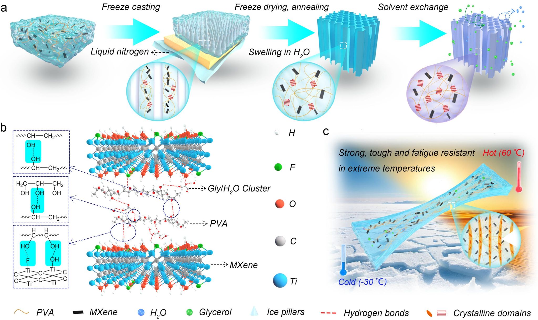研究团队独辟蹊径,聚焦“智能农业材料”前沿领域,从人体肌肉、肌腱的多层级各向异性结构中获取灵感,首创“定向冷冻-退火-溶剂置换”三阶协同制备技术。通过精确调控多元醇分子与聚合物网络的相互作用,成功构建出具有仿生分级结构的有机凝胶体系。实验证实,新材料在-30℃至60℃宽温域内展现超常性能:疲劳阈值突破性提升至传统材料的10倍以上,且在万次循环载荷后仍保持结构完整性,彻底解决了极端环境下疲劳断裂的世界性难题。这种材料如同给柔性器件装上了“自我修复装甲”,其在低温防冻、高温保湿方面的独特优势。据悉,目前,团队已与多家科技企业开展合作,探索其在可穿戴医疗传感器、智能农业机器人关节等领域的产业化应用,相关成果已应用于精准农业传感器等智慧农业场景。