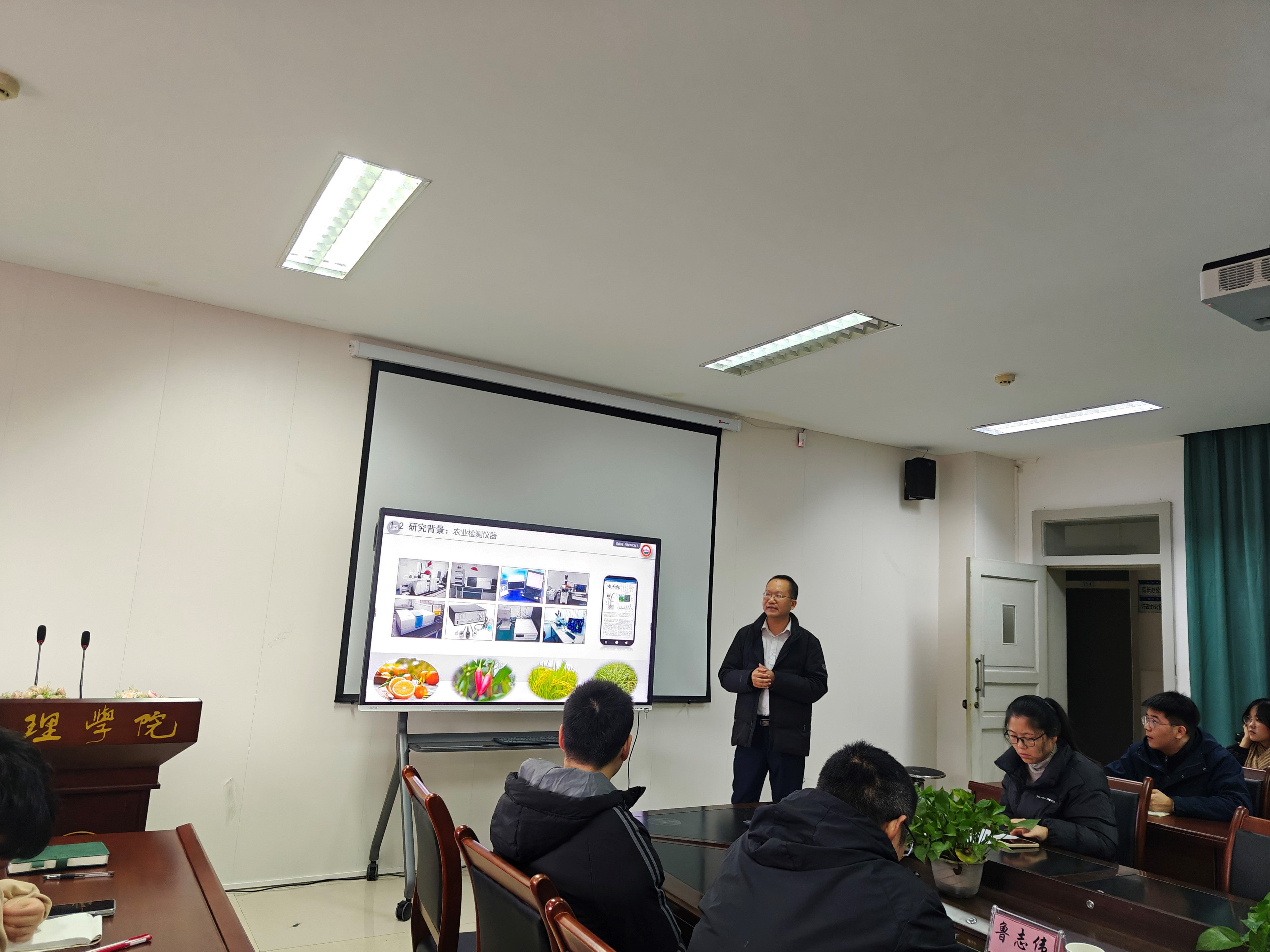 1124日上午,湖南农业大学化学与材料科学学院苏招红副教授做客“理学讲堂(第24期)”,作了题为《基于智能手机的几种植物活性分子的电化学传感研究》的学术报告。理学院副院长、纪委书记鲁志伟,实验中心主任孙萌萌副教授,部分研究生及化学拔尖创新班同学参加了此次报告会,报告会由孙萌萌主持。