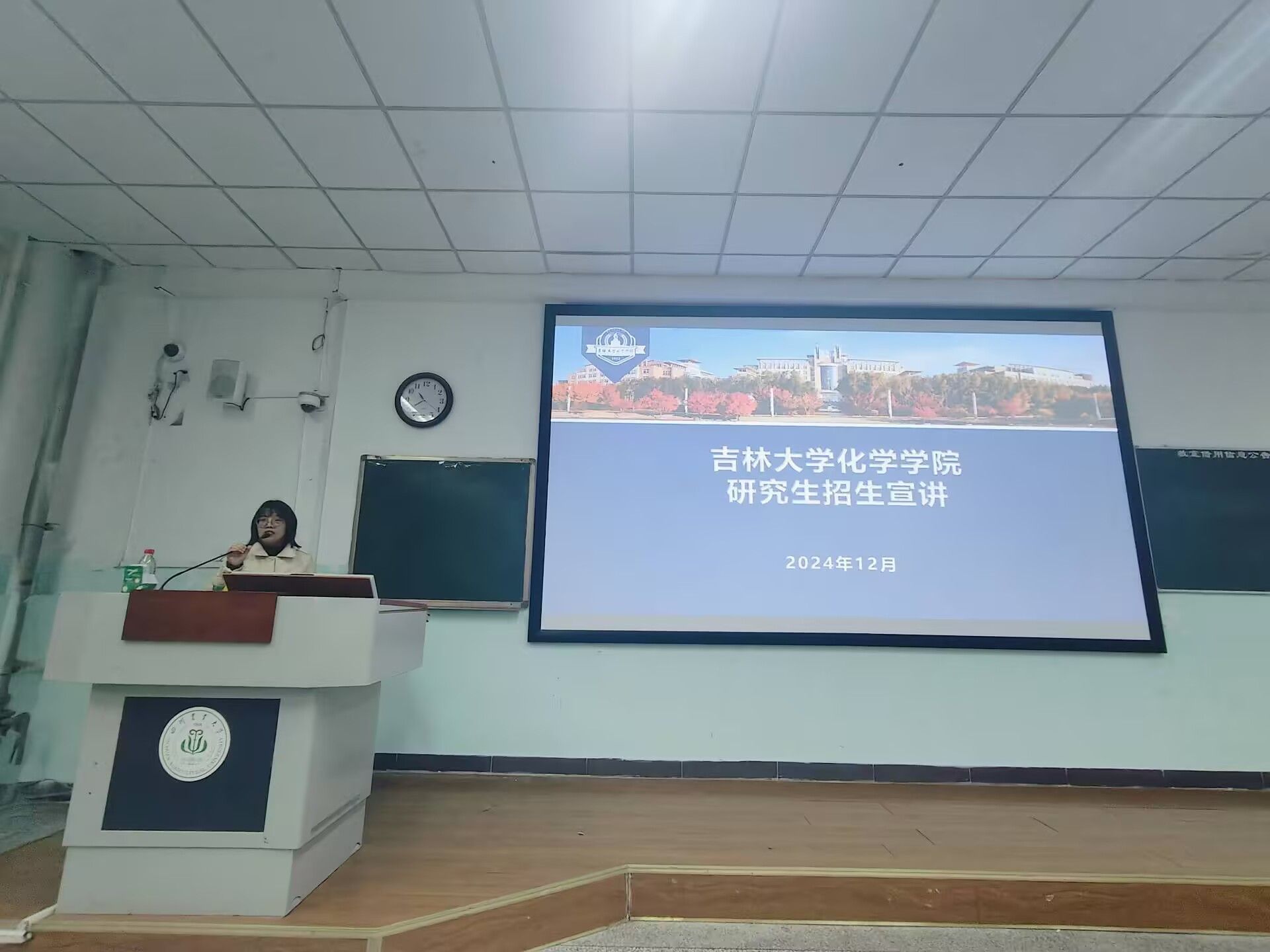 报告会后,岳惠娟教授代表吉林大学化学学院进行了招生宣讲,就学院概况、师资队伍、培养方案、校园生活和报考流程等方面向与会学生详细介绍了吉林大学化学院,并欢迎感兴趣的同学报考。